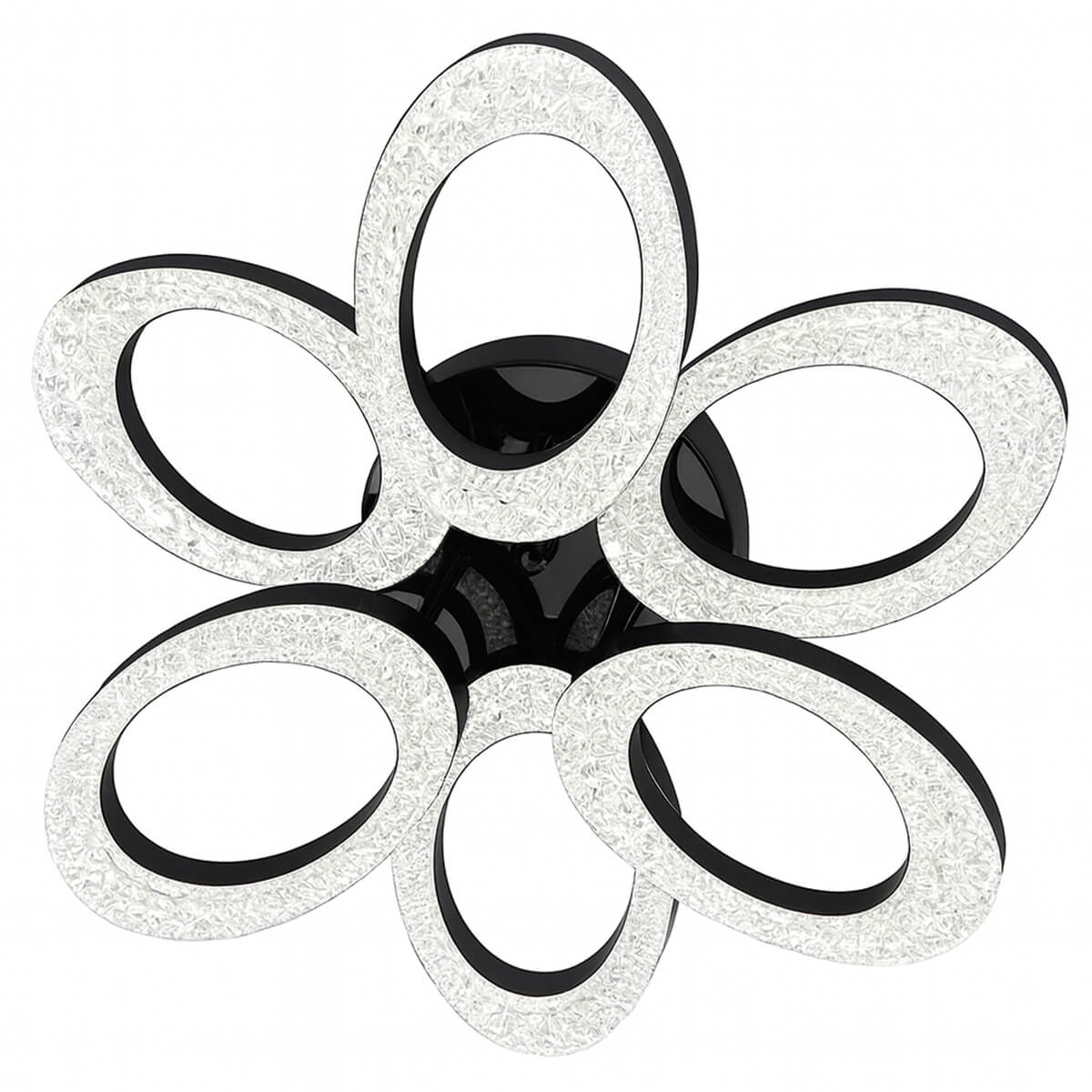 Corpul este realizat din metal rezistent, acoperit cu vopsea neagră care conferă produsului un aspect expresiv și ușor de integrat în orice decor. Cele șase abajururi ovale din acril, cu textură decorativă, difuzează lumina uniform, creând o atmosferă confortabilă pentru ochi. LED-urile integrate asigură o durată de viață îndelungată și un consum redus de energie.