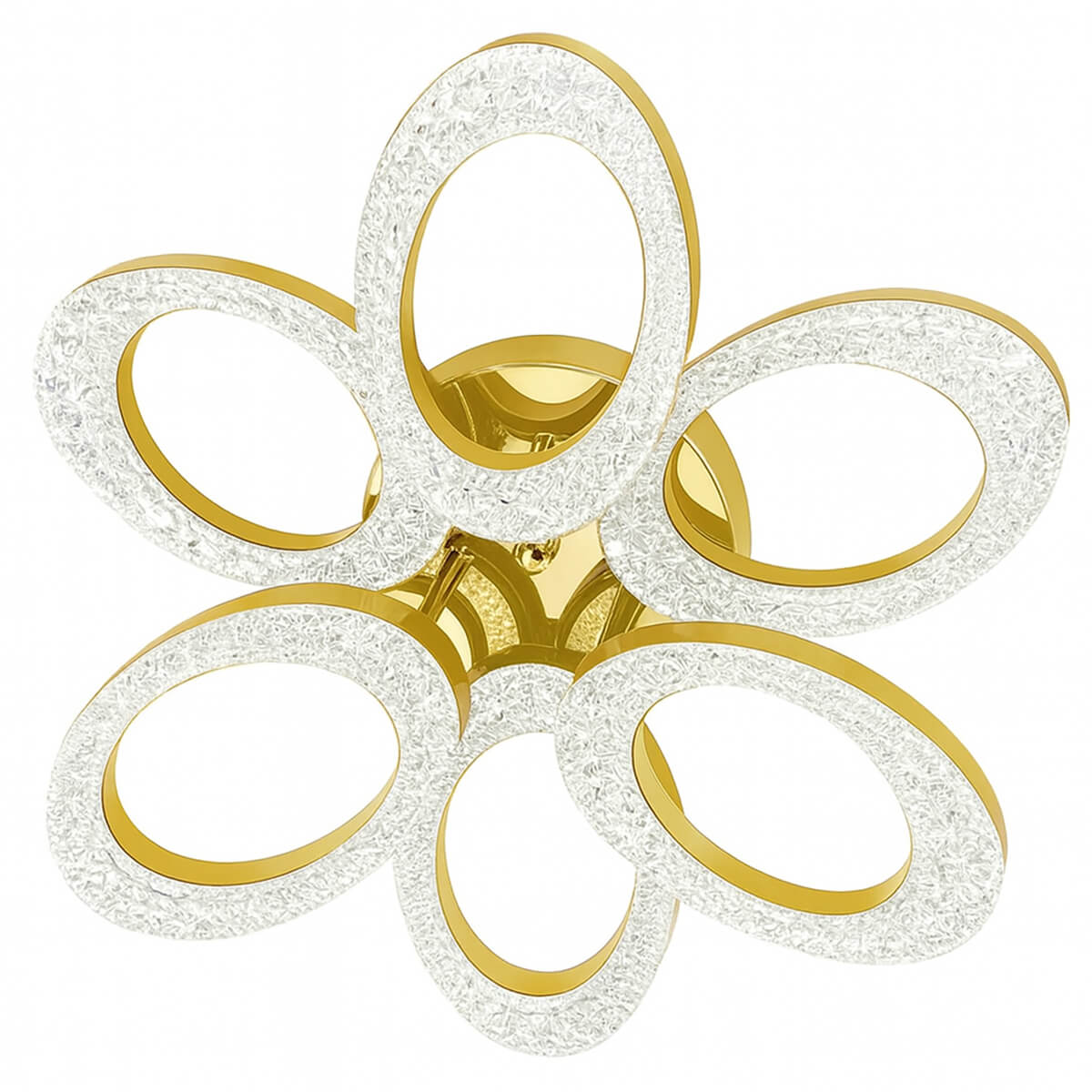Lustră LED de tavan SX8116/3+3S aurie, 230 V, IP20 — o soluție elegantă pentru interioarele moderne, care combină stilul, funcționalitatea și eficiența energetică. Forma sa originală cu șase inele luminoase creează un efect de iluminare volumetric și distribuie uniform lumina în întreaga încăpere.