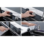 - Material și finisaj: cupa este realizată din oțel inoxidabil cu acoperire decorativă nano-black și suprafață texturată, rezistentă la zgârieturi și murdărie. Apa și grăsimea nu aderă la metal, ceea ce simplifică întreținerea.