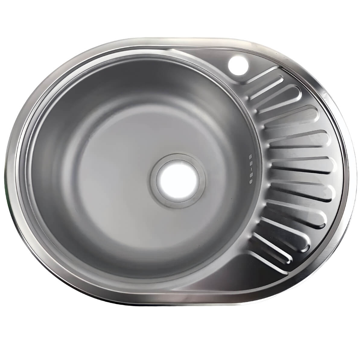 Chiuveta de bucătărie din oțel 570x450x180 mm, ovală, încastrabilă, cu aripă pe dreapta și gaură pentru baterie este destinată spălării zilnice a vaselor, alimentelor și ustensilelor de bucătărie. Este realizată din oțel, fiind rezistentă la umezeală și la solicitările uzuale din bucătărie.