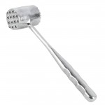 Ciocan pentru carne din aluminiu DA0368 - Instrumentul perfect pentru prepararea preparatelor din carne. Construcția sa unică, cu dinți mici și mari pe părți diferite, permite o varietate de moduri de frăgezire a cărnii. Suprafața zimțată reduce efortul de bătaie și este ideală pentru tăierea nervurilor și a bucăților tari. După utilizare, se recomandă să clătiți bine ciocanul în apă curentă și detergent și să îl uscați.