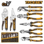 Set de clește INGCO 7 buc. INGCO COS23036 — un set profesional de unelte, destinat efectuării diferitelor lucrări, precum prindere, tăiere, alunecare și filetare. Setul include 7 tipuri de clește, oferind confort și versatilitate în utilizarea în diverse situații: