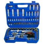 Trusă chei tubulare și biți NEW TOOLS, 94 piese, 1/2″ și 1/4″, cu clichete, în valiză 3115B — set universal pentru strângerea și desfacerea elementelor de fixare la reparații auto, asamblarea mobilierului, lucrări de montaj și uz casnic. Setul include capete și biți pentru diferite tipuri de șuruburi și bolțuri, iar clichetele accelerează lucrul în spații înguste. Valiza rigidă permite depozitarea și transportul ordonat al uneltelor.