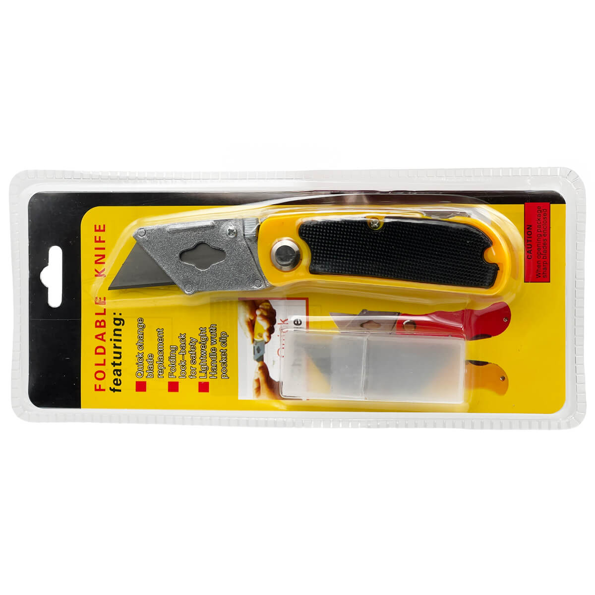 Cuțit pliabil pentru lame trapezoidale, cu lame de rezervă CUT50