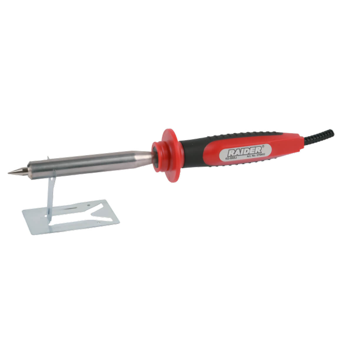 Ciocan de lipit Raider RD-SI03, 80 W, cu vârf ascuțit, 220 V — este conceput pentru lucrări precise de lipire în electronică, reparații și sarcini casnice. Datorită puterii ridicate și încălzirii rapide, asigură o temperatură stabilă și topirea uniformă a aliajului de lipit fără supraîncălzirea componentelor.