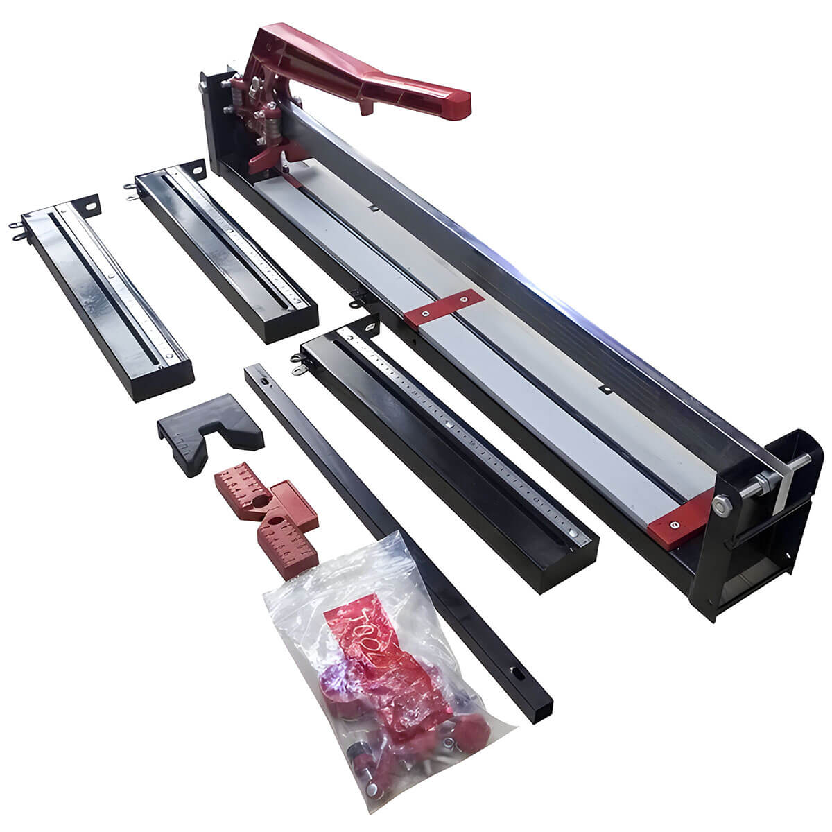 Tăietorul manual de gresie și faianță MT-1200 Profi 1200 mm cu ghidaj laser este proiectat pentru tăierea liniară a plăcilor ceramice și a gresiei porțelanate. Construcția se bazează pe un cadru metalic rigid și ghidaje care asigură mișcarea stabilă și uniformă a căruciorului fără abateri. Modelul este destinat tăierilor precise pe formate lungi și utilizării regulate.