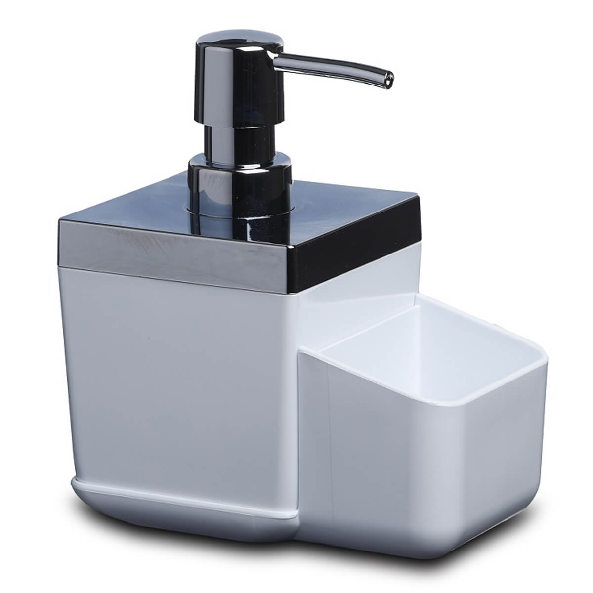 Dozator detergent lichid bucătărie Primanova Toskana, cu suport pentru burete, alb, 440 ml (M-E51-01)