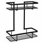 Etajeră dublă pentru baie HOLA, din oțel inoxidabil, neagră, 255 x 105 x 320 mm (Art. 0430377) — poliță murală compactă destinată depozitării șampoanelor, gelurilor de duș, săpunului și altor accesorii în cabina de duș sau lângă chiuvetă. Cele două niveluri permit organizarea produselor pe înălțime și păstrarea lor la îndemână, fără a aglomera marginea căzii.