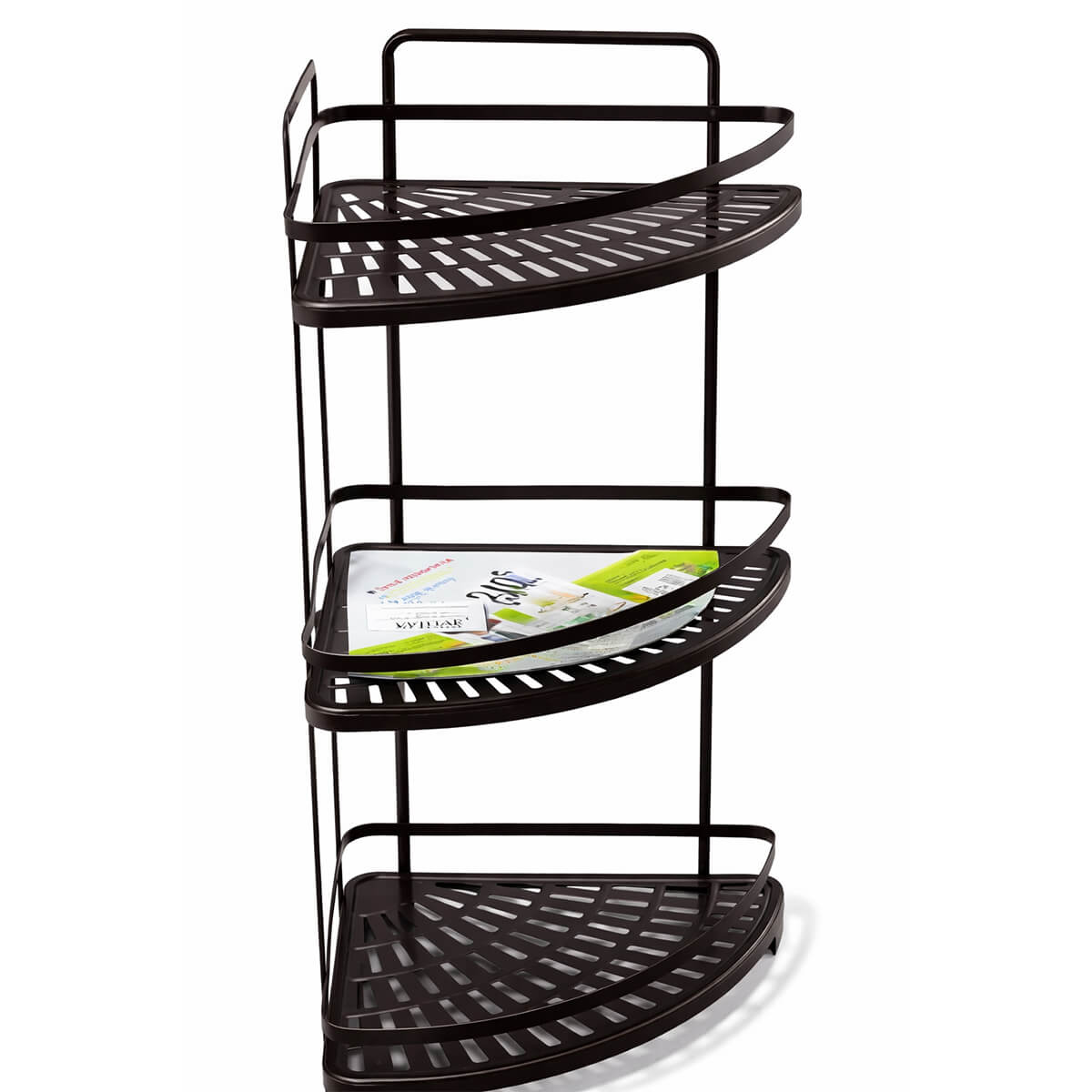 Etajeră de colț pentru baie cu 3 niveluri, din metal, montaj pe perete AT2657 este destinată depozitării compacte și comode a accesoriilor în baie. Se montează în colț, economisind spațiul și ajutând la menținerea ordinii.