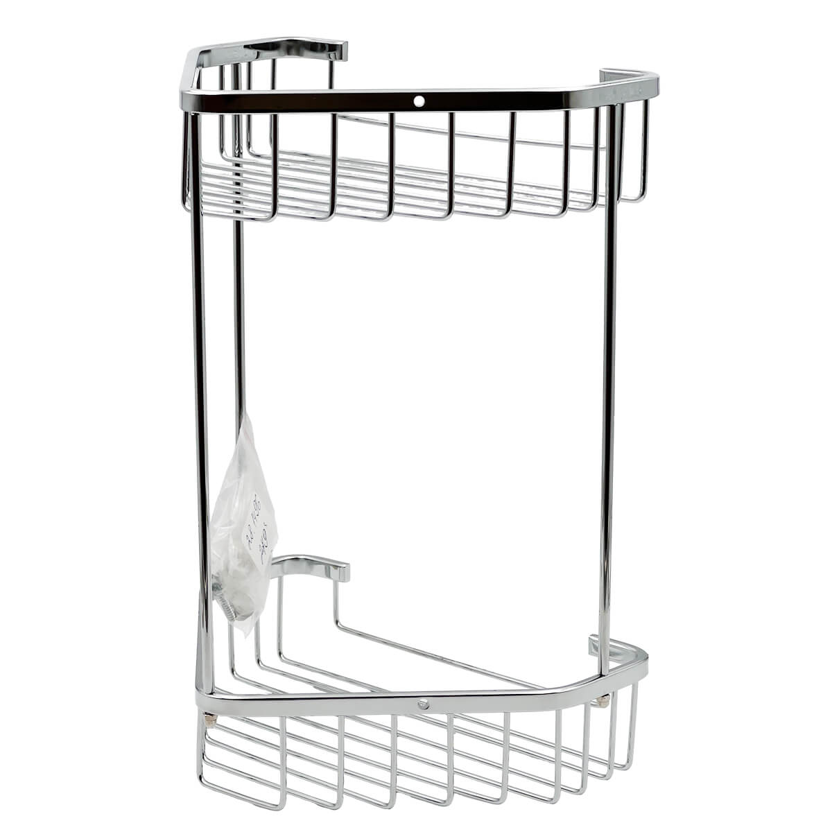 Raft de colț pentru baie cu 2 niveluri, din metal, crom, montare pe perete, S009