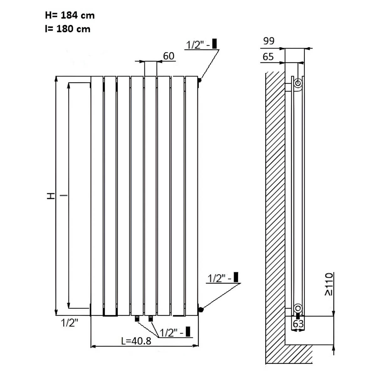 - Format vertical de 1838 mm — economisește spațiu pe lățime și este ideal pentru zone înguste, lângă duș sau cadă.