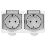 Priză dublă rezistentă la umiditate 1000kW SELENA AQUA 2P+E 16A IP44 albă KW-0206-0706 — destinată pentru conectarea aparatelor electrice în încăperi cu umiditate ridicată sau în spații exterioare. Construcția este realizată din materiale durabile, rezistente la apă și praf, ceea ce asigură o utilizare sigură.