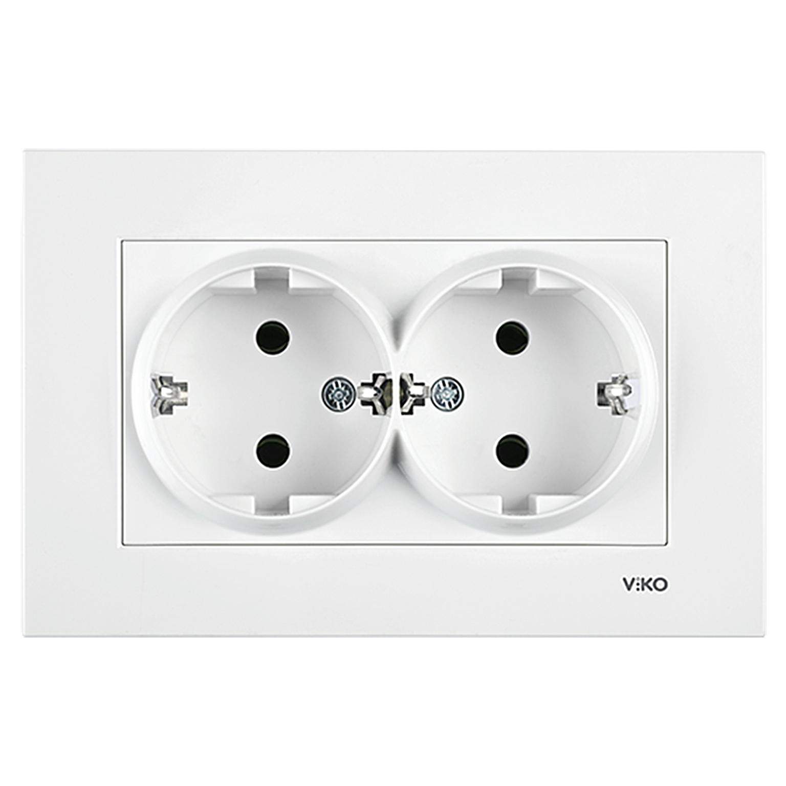 Priză dublă cu împământare Viko Karre ascunsă albă 90960056