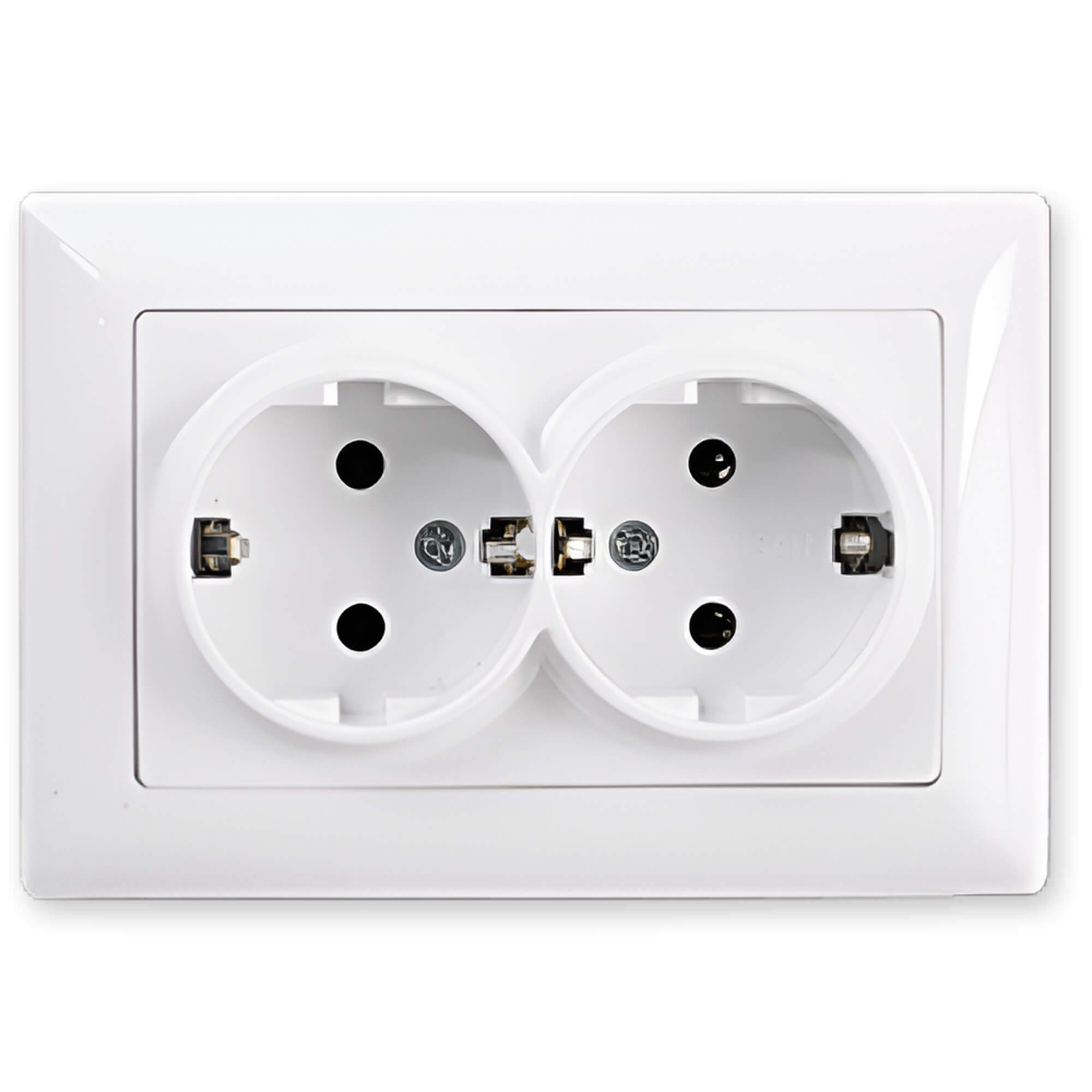 Priză dublă Gunsan Visage cu împământare albă 01281100100150: o soluție electrică fiabilă, echipată cu două prize. Asigură o împământare eficientă, conformă standardelor înalte de siguranță. Design solid, montaj simplu, ideală pentru conectarea diverselor dispozitive.