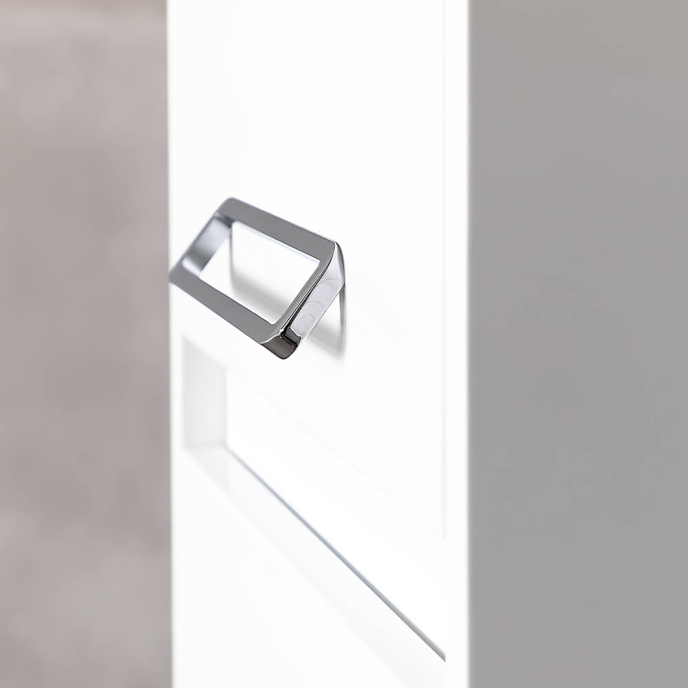 Fațada și corpul sunt realizate din MDF vopsit, rezistent la umiditate și variații de temperatură. Suprafețele mate reduc vizibilitatea amprentelor și accentuează designul minimalist. Deschiderea universală a ușii permite montarea dulapului conform necesităților de amplasare.