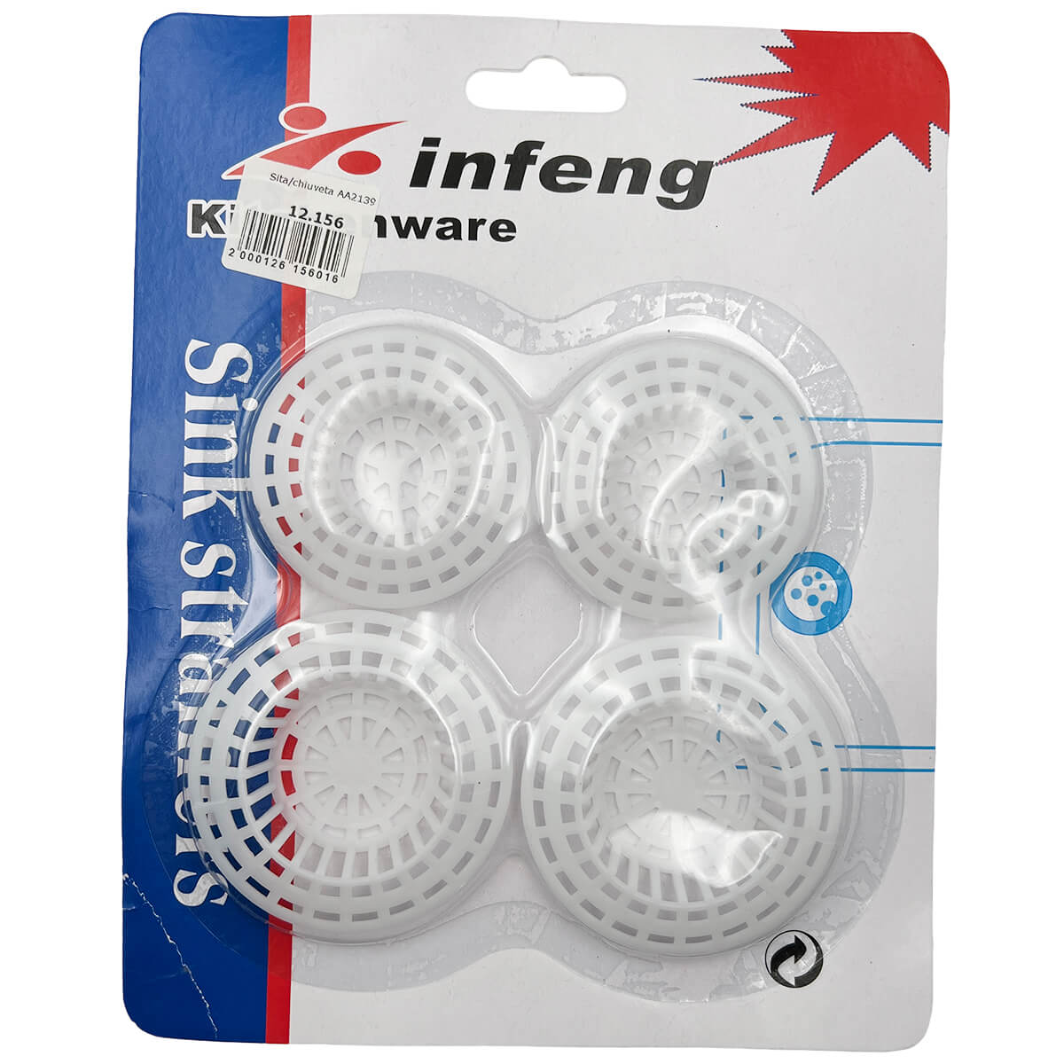 Set de site pentru scurgerea lavoarului și chiuvetei, din plastic, 4 buc. — o soluție practică pentru a proteja scurgerea de fire de păr, resturi alimentare și alte impurități mici. Sitele se așază direct peste orificiul de scurgere și contribuie la reducerea frecvenței curățării sifonului și a țevilor.
