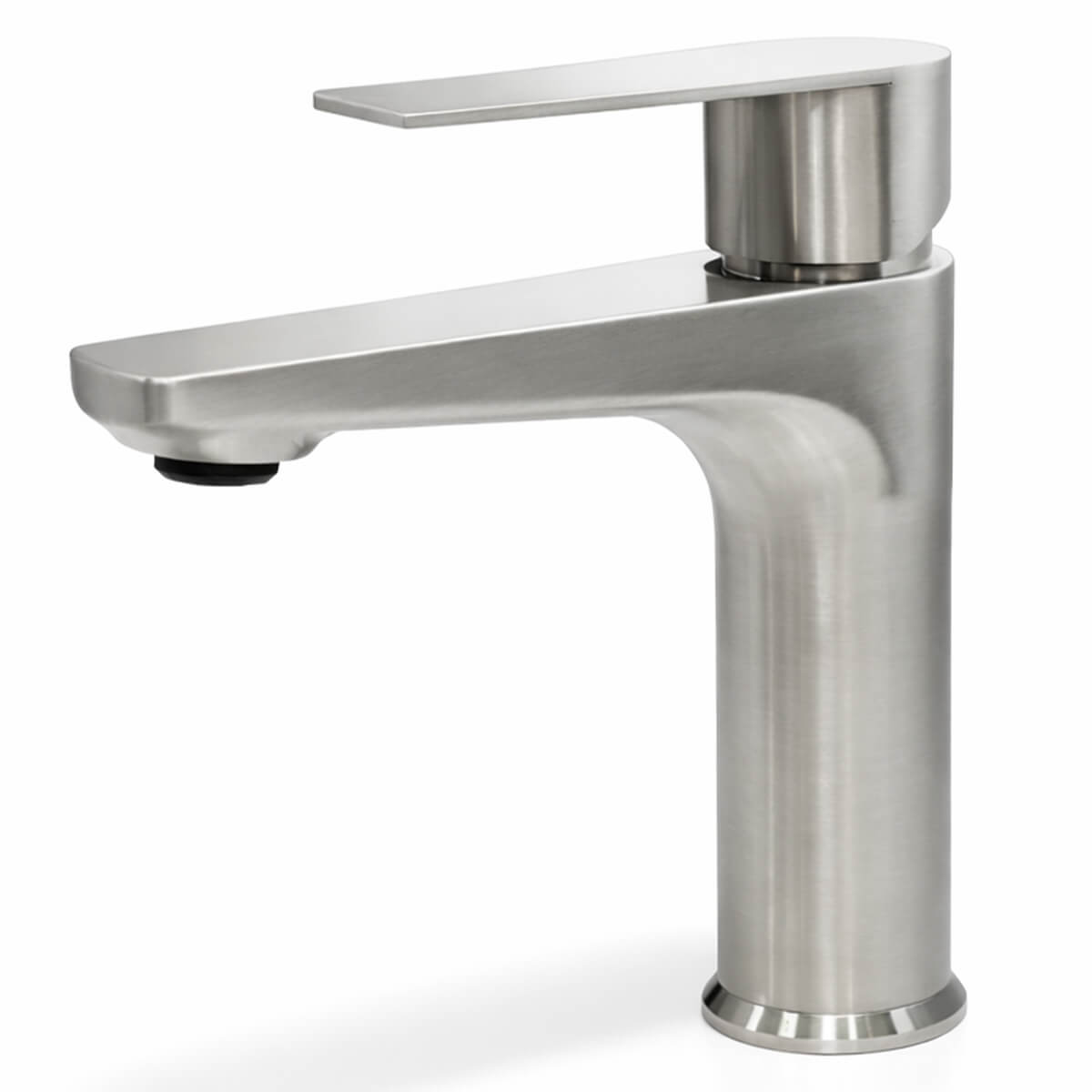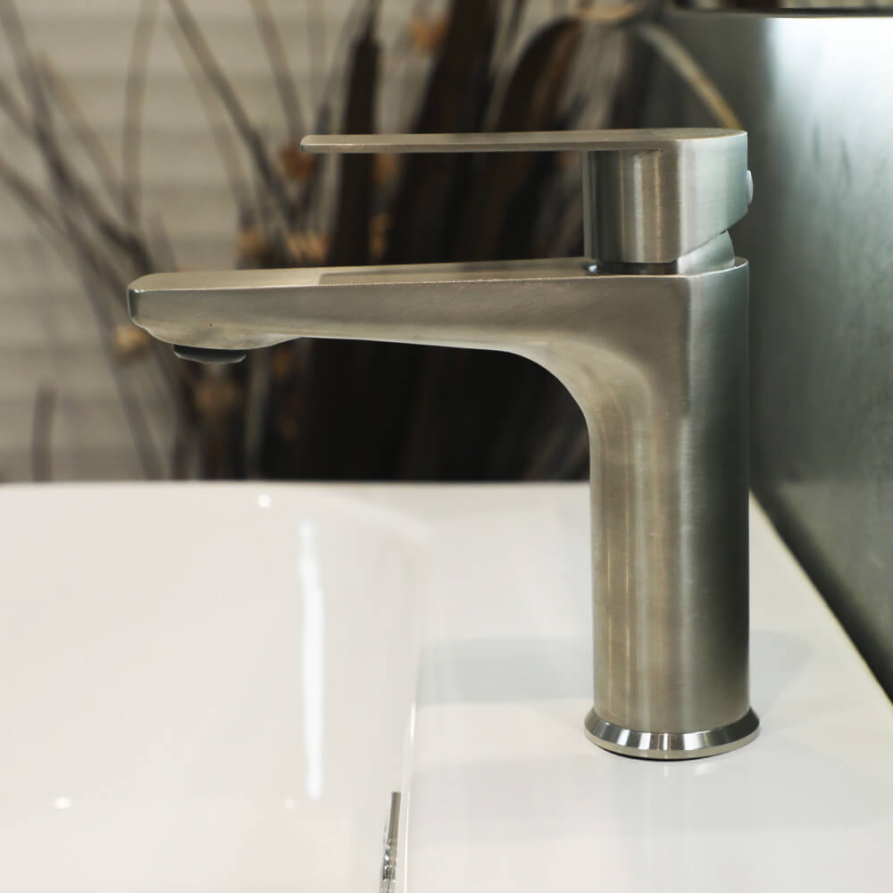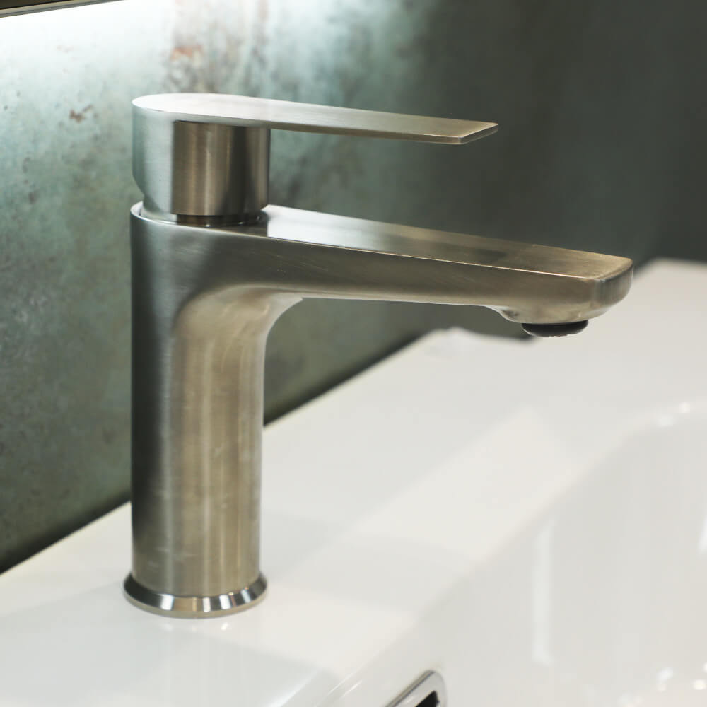 Baterie pentru lavoar MAT|ECO Aleo nichel periat, monocomandă, din oțel inoxidabil — o soluție practică pentru lavoar, potrivită unui interior modern. Finisajul mat, periat, cu aspect de nichel arată ordonat și discret, fără a domina vizual spațiul, iar corpul din oțel este conceput pentru utilizare zilnică în baie.
