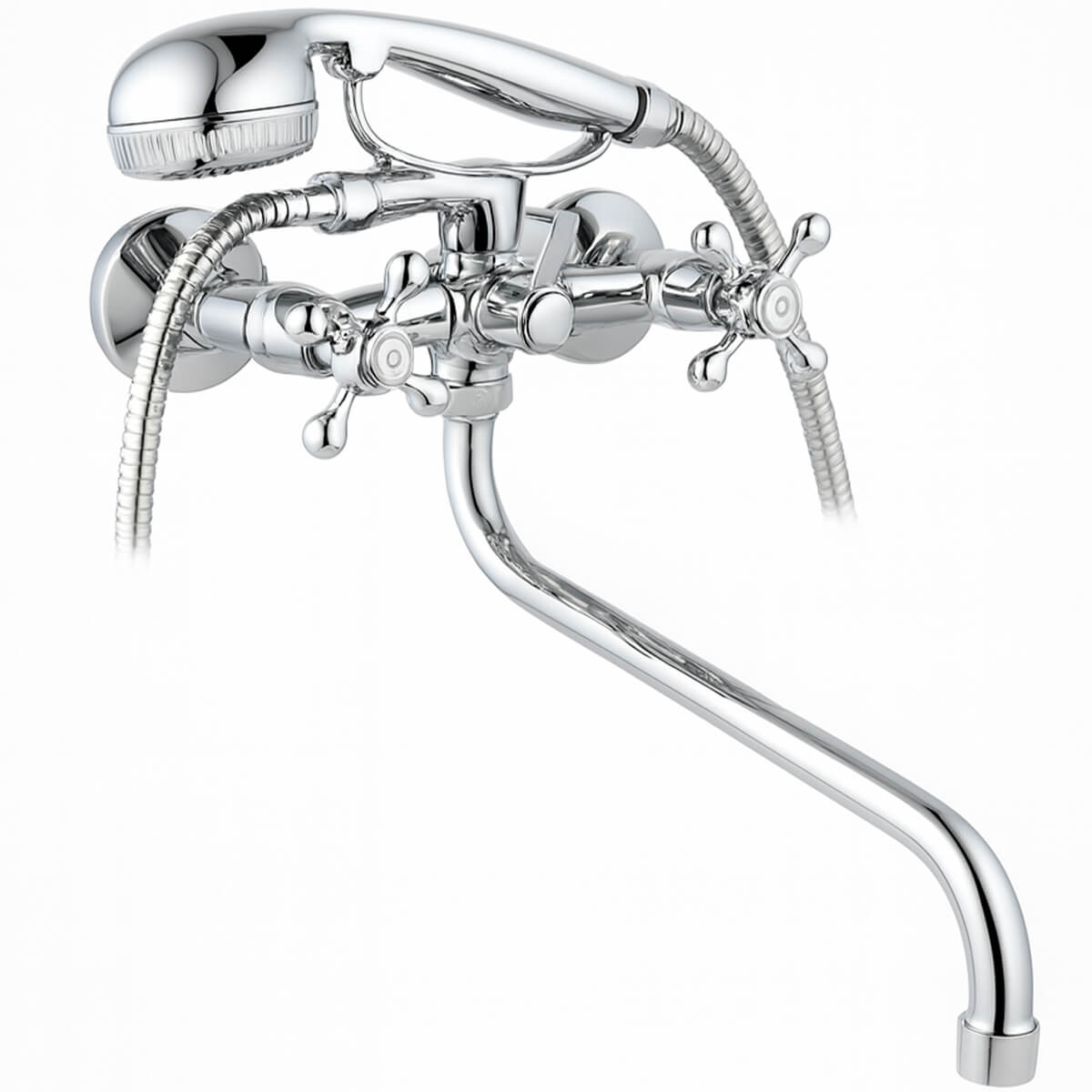 Baterie pentru cadă și duș Rosinka montaj pe perete, cu două supape, crom, pipă 35 cm 125-1095