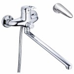 Baterie pentru cadă și duș Cron monocomandă, pipă lungă pivotantă, cu montare pe perete, crom (Art. 1027) - este destinată pentru alimentarea și amestecarea apei calde și reci în baie. Modelul este potrivit pentru montaj deasupra căzii și permite comutarea comodă a fluxului între pipă și duș.