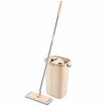 Mopul plat ajută la curățarea comodă a podelei de-a lungul pereților, sub mobilier și în colțuri, iar găleata cu sistem de stoarcere permite clătirea și stoarcerea lavetei fără contactul mâinilor cu apa murdară.