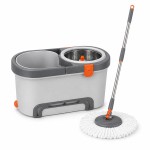 Găleata cu mecanism de stoarcere ajută la eliminarea rapidă a excesului de apă din capul mopului, astfel mâinile rămân uscate, iar curățenia se face mai eficient. Mopul cu cap rotund din microfibră colectează bine praful, murdăria fină și umezeala, fiind potrivit pentru gresie, laminat, linoleum și alte pardoseli dure.