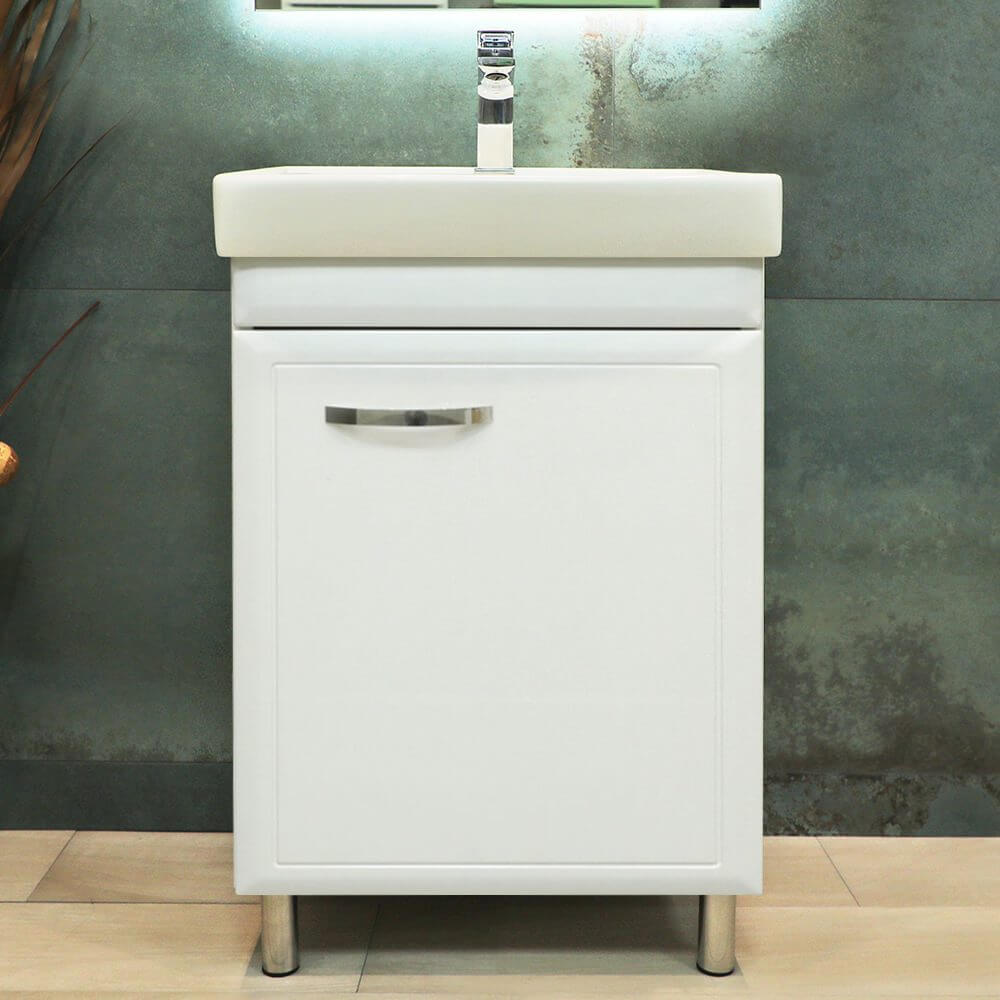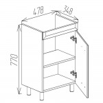 Dimensiunile compacte de 478x348x770 mm sunt potrivite pentru băile de dimensiuni reduse: în interior pot fi depozitate produse de curățenie, rezerve și alte obiecte utile, astfel încât totul să fie la îndemână și să nu rămână la vedere. Fronturile albe mate au un aspect neutru și se integrează ușor în majoritatea amenajărilor.