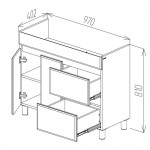Dulapul este confecționat din materiale rezistente la umiditate: corpul este realizat din PAL durabil, iar fronturile — din MDF vopsit cu suprafață mată uniformă. Datorită acestor materiale, mobilierul este rezistent la umezeală și variații de temperatură, ceea ce îi asigură durabilitate și utilizare practică în timp.
