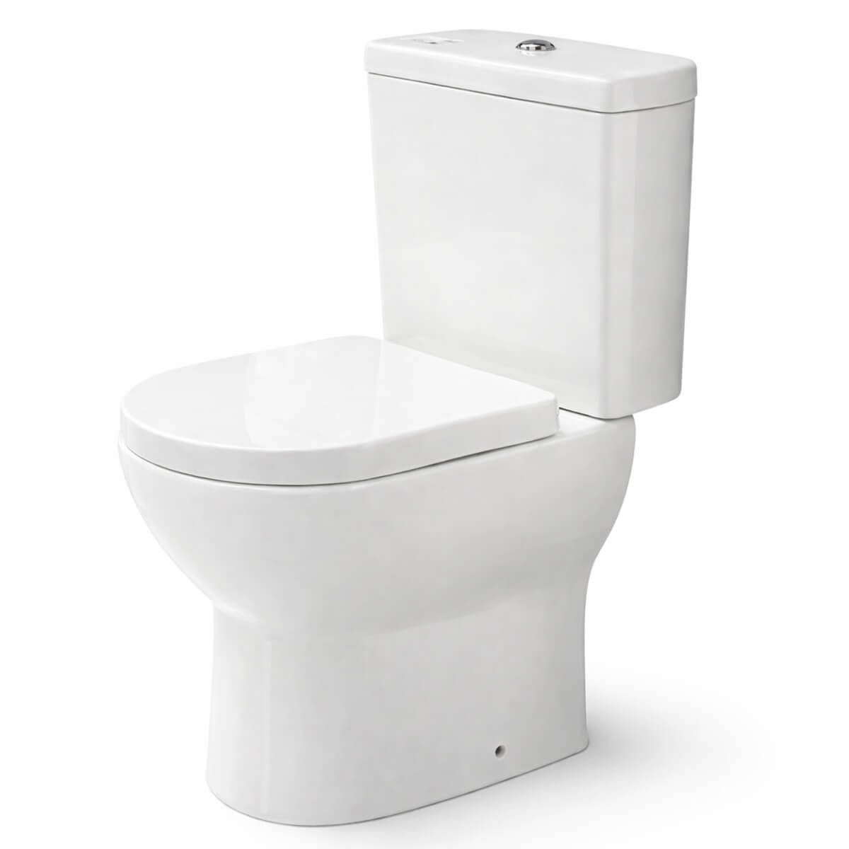 Vas WC compact FARO de podea, alb, alimentare inferioară, capac microlift (Soft-Close) este destinat instalării în grupuri sanitare din spații rezidențiale și comerciale. Este potrivit pentru utilizare zilnică și asigură confort în exploatare.