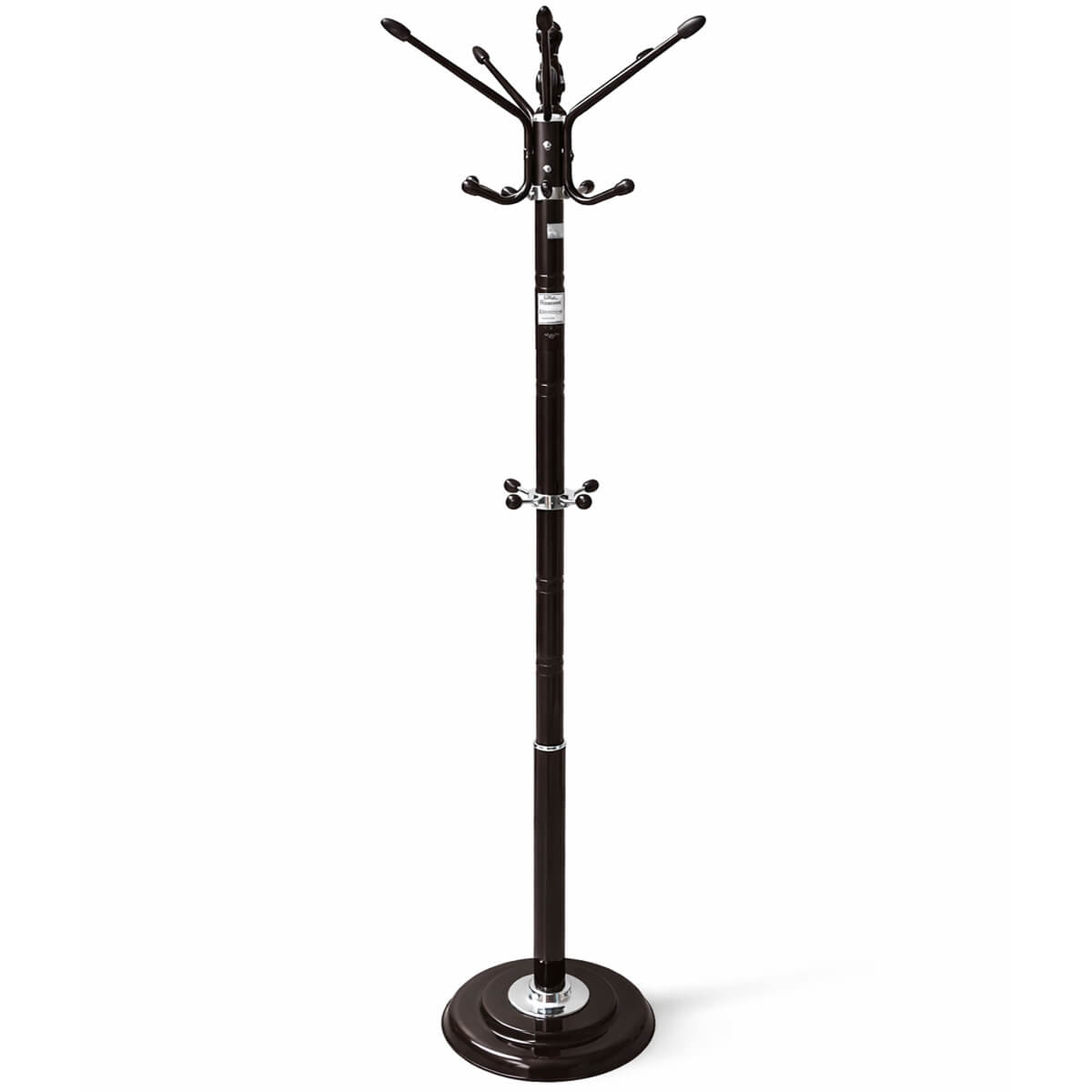 Cuier de podea metalic pentru haine, maro închis, cu bază din piatră MLS600-2 este destinat depozitării comode a hainelor de exterior, a pălăriilor și a accesoriilor în hol, birou sau dressing.