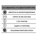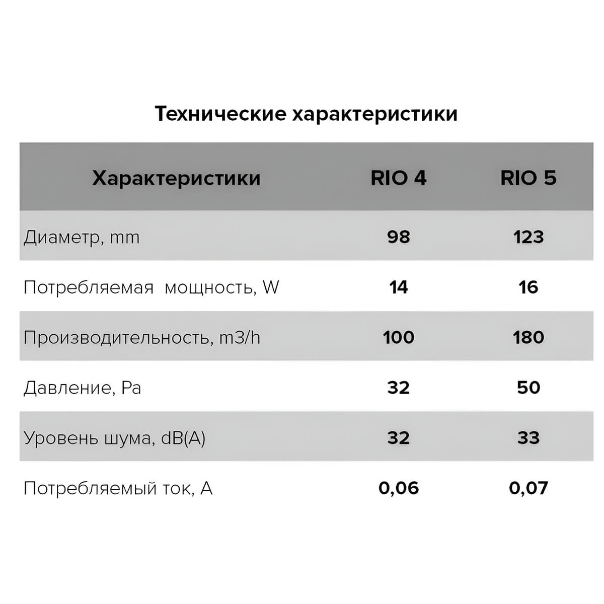 Ventilator de evacuare axială cu supapă de reținere DICITI RIO 4C D100 alb - potrivit pentru baie, toaletă și bucătărie. Zgomot redus, cu supapă de reținere, fabricat din plastic ABS, ușor de montat pe perete. Funcționează la 220 V, cu o putere de 14 W și o capacitate de 100 m³/oră.