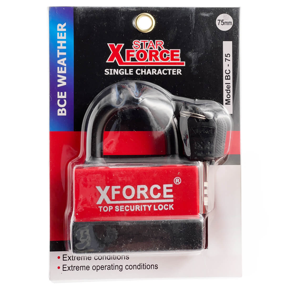 Lacăt X FORCE 75 mm impermeabil, cu acoperire cauciucată — o soluție fiabilă pentru protejarea bunurilor în condiții de umiditate ridicată și variații de temperatură.