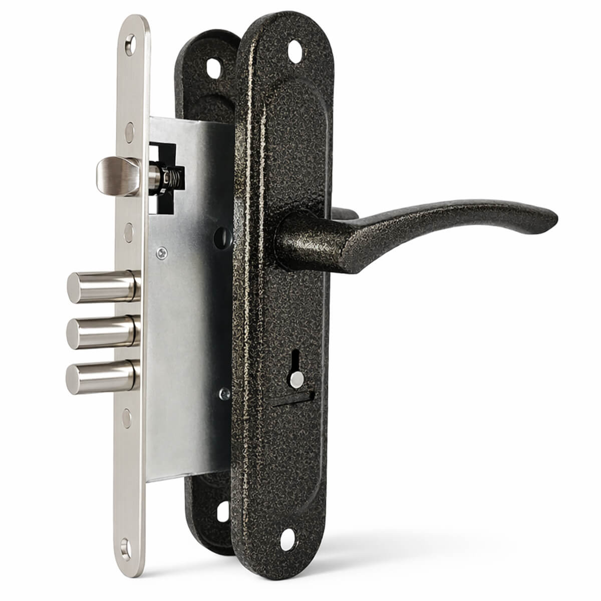 Broască îngropată cu mânere Zenit ZV9.009/17, mecanism cu suvaldă 6, interax 55 mm, backset 55 mm, 4 chei, cupru — model cu mecanism pe suvalde pentru uși cu distanța între axe de 55 mm și adâncimea găurii pentru cheie (backset) de 55 mm. Este potrivită atât pentru uși de intrare, cât și pentru uși de interior, acolo unde este necesară o mecanică clară, închidere stabilă și o schemă clasică de blocare.