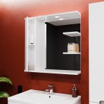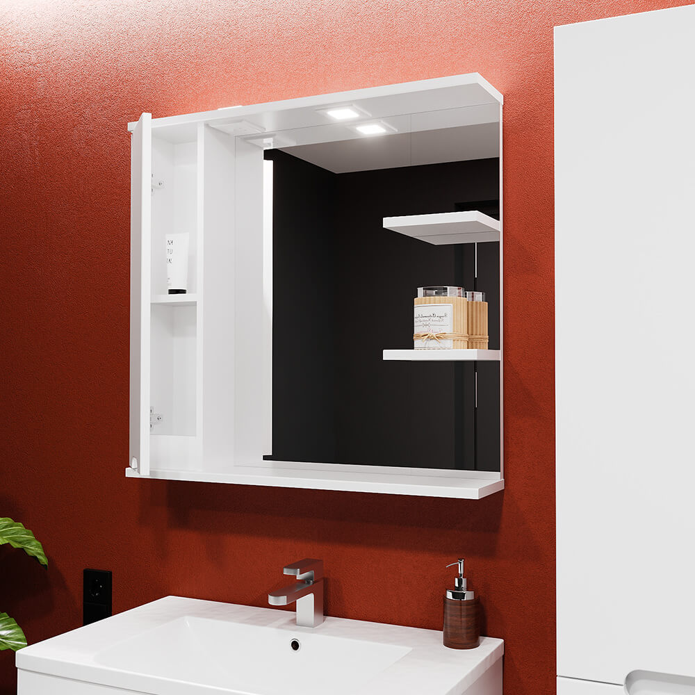 La interior sunt prevăzute rafturi pentru obiectele de uz zilnic: cosmetice, produse de îngrijire, accesorii pentru bărbierit. În partea dreaptă există rafturi deschise — ideale pentru lucrurile folosite frecvent, fără a deschide ușa de fiecare dată.