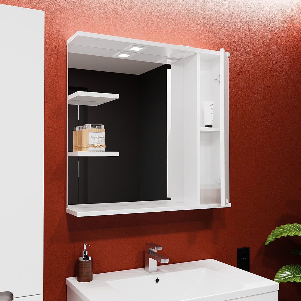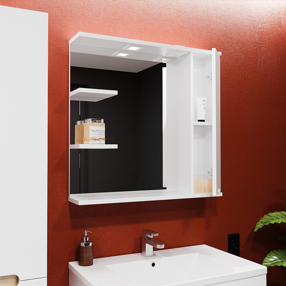 Dulap cu oglindă Bayro Etna 1001×754 mm, dreapta, alb mat este un dulap suspendat cu oglindă pentru baie, care combină spațiul de depozitare și o oglindă de dimensiuni mari într-un corp compact și ordonat. Formatul este potrivit pentru utilizare în familie: obiectele necesare sunt la îndemână, iar zona lavoarului arată organizată și „curată”.
