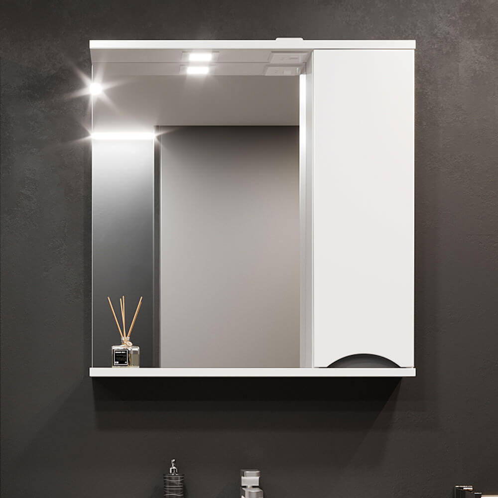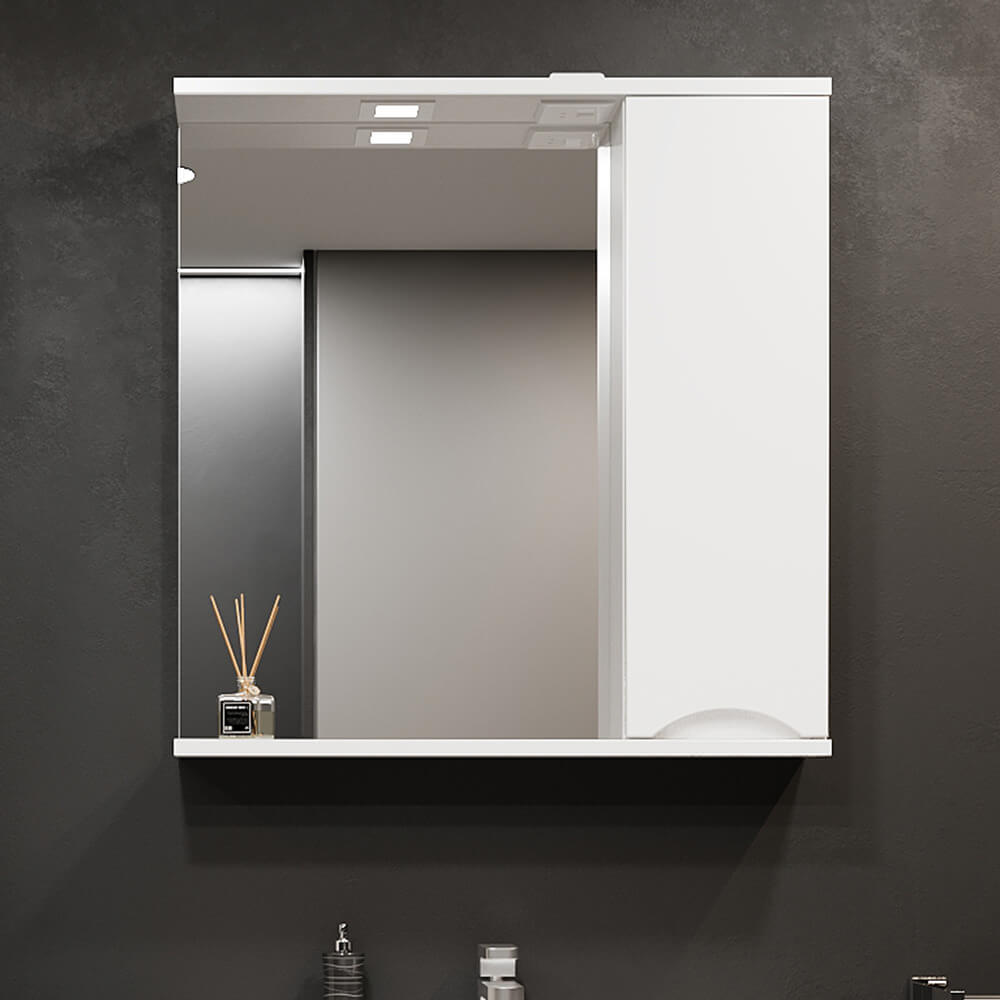Dulapul cu oglindă pentru baie Bayro Elara 650×750 mm, dreapta, alb mat este o soluție compactă „2 în 1”: oglindă pentru îngrijirea zilnică și spațiu de depozitare închis pentru cosmetice și obiecte de uz casnic. Modulul din partea dreaptă ajută la menținerea ordinii în zona lavoarului, iar culoarea alb mat se potrivește ușor cu orice obiect sanitar.