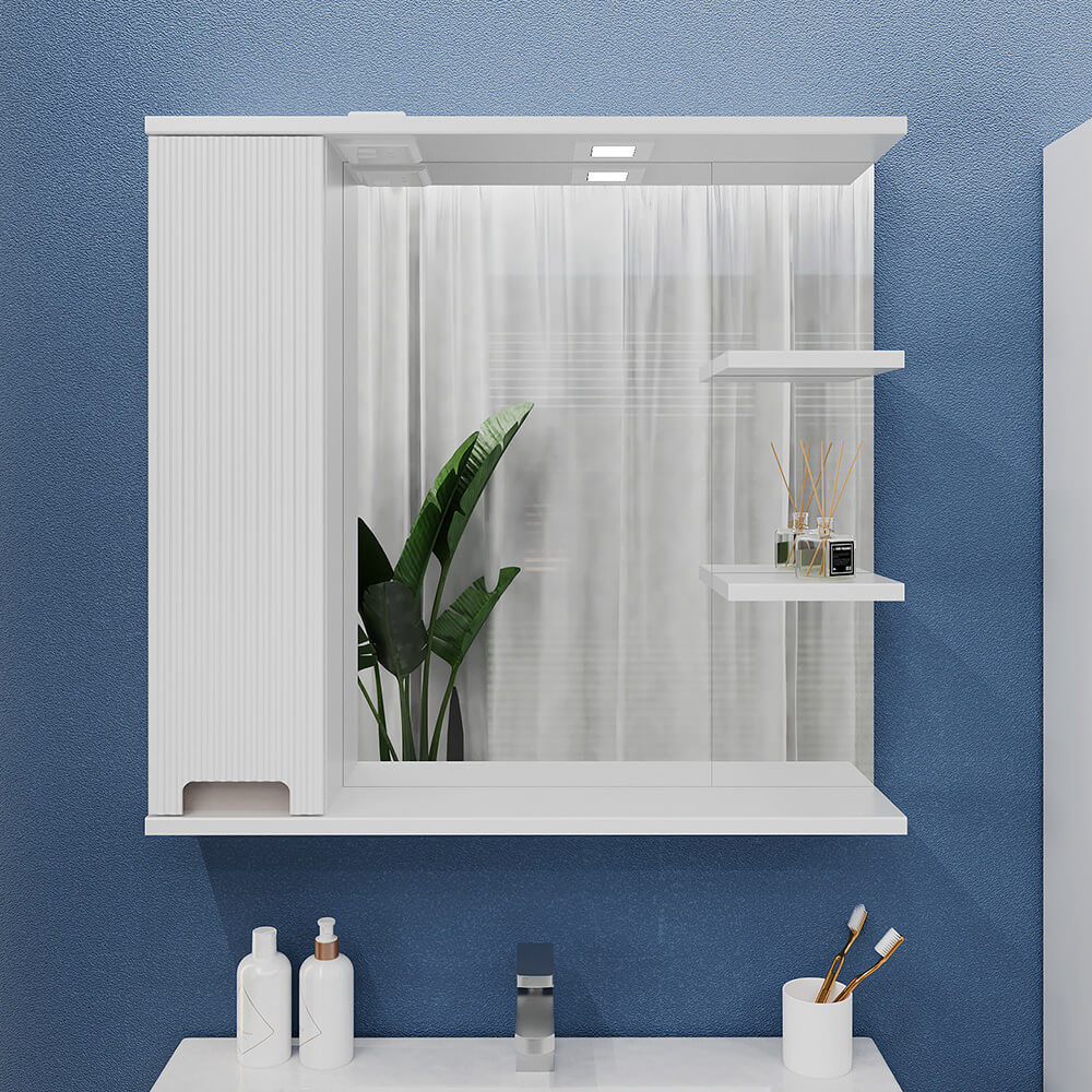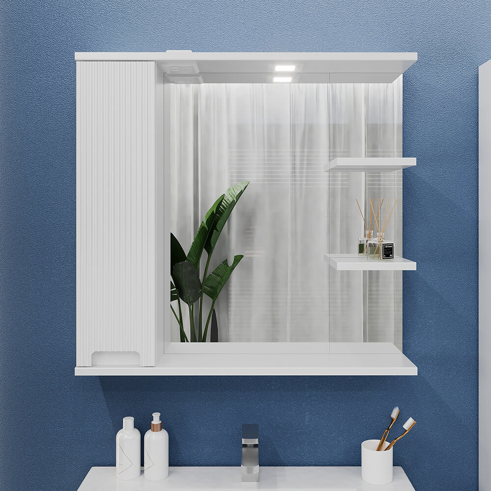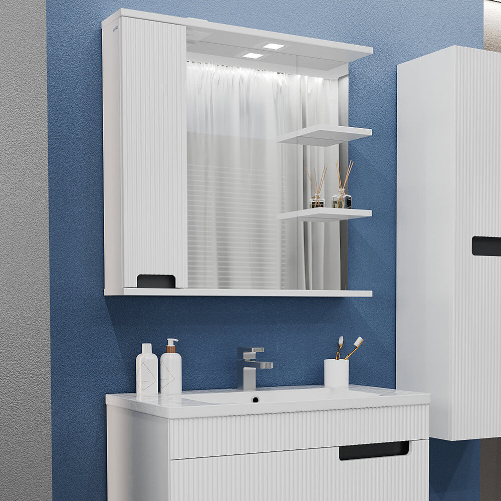 Dulap cu oglindă pentru baie Bayro Positano 799×754 mm, stânga, alb mat este un dulap suspendat cu oglindă care combină într-un singur produs oglinda, spațiul de depozitare și iluminarea. Este conceput pentru montaj deasupra lavoarului și ajută la organizarea obiectelor de uz zilnic, fără a încărca vizual spațiul.