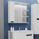 În interior este prevăzut spațiu pentru depozitarea cosmeticelor, produselor de igienă și accesoriilor. Suprafața cu oglindă contribuie la mărirea vizuală a încăperii, iar iluminarea integrată sporește confortul în timpul rutinei de dimineață și seară.