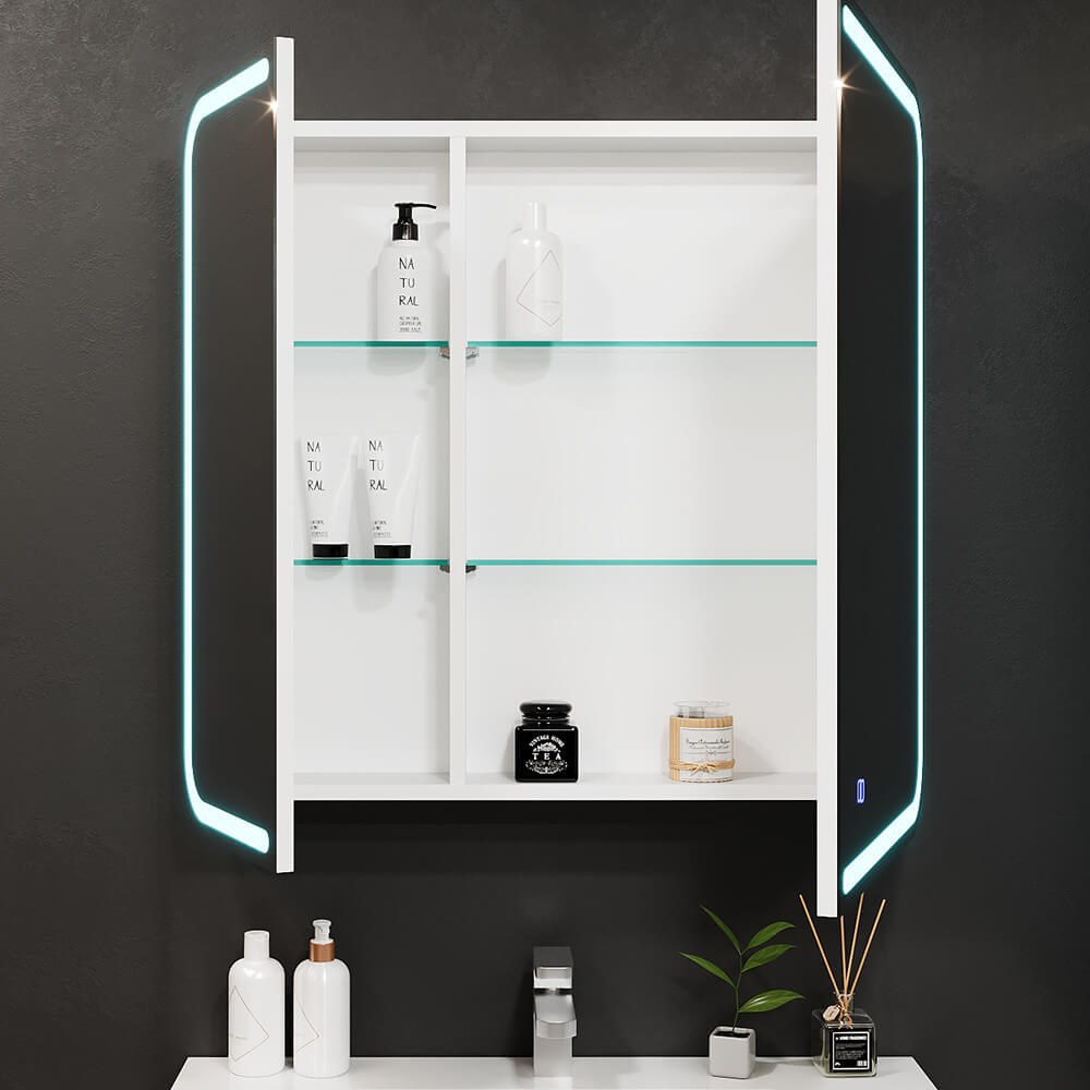 Dulap cu oglindă pentru baie Bayro Sonata LED Touch 800×760 mm, alb, suspendat, cu iluminare LED este o soluție „2 în 1”: o oglindă mare pentru îngrijirea zilnică și un spațiu ordonat pentru depozitarea cosmeticelor, produselor și accesoriilor, amplasat chiar deasupra lavoarului.