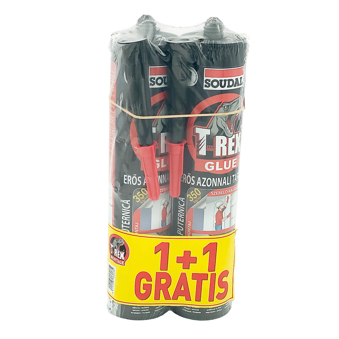 T-REX Strong Instant Adhesion este un adeziv de montaj pe bază de apă, gata de utilizare, monocomponent, armat cu fibre, pe bază de apă, cu o rezistență inițială extrem de mare (350 kg/m2 de suprafață totală de lipire) și o rezistență de lipire finală ridicată. Se fixează imediat după comprimarea suprafețelor, nu necesită suport mecanic, înlocuind șuruburile și cuiele. Una dintre suprafețe trebuie să fie poroasă.