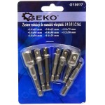 Набор переходников GEKO G15017 — это удобное и надежное решение для тех, кто часто работает с насадками различных размеров. В комплекте вы найдете 8 прочных адаптеров, которые помогут быстро и безопасно подключать насадки с посадочными размерами 1/4", 3/8" и 1/2" к различным инструментам.
