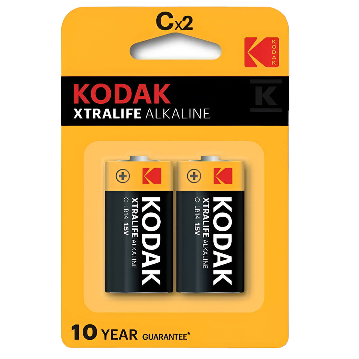 Батарейки Kodak XTRALIFE щелочные C LR14 1.5 В 2 шт. предназначены для устройств, которым нужен стабильный и продолжительный источник питания. Они подходят для фонарей, игрушек, радиоприёмников, портативной электроники и другой техники с типоразмером C.