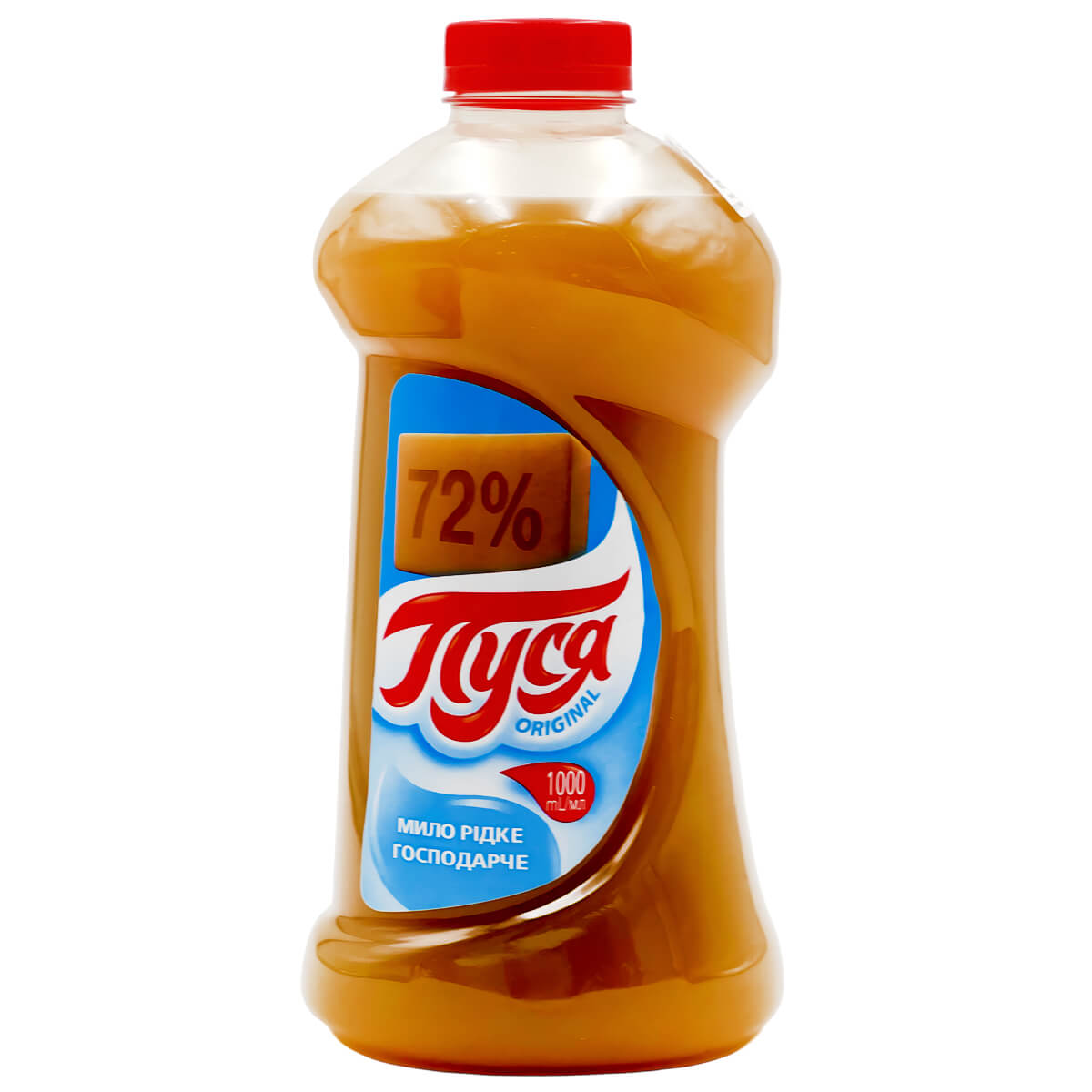 Жидкое хозяйственное мыло Пуся Original 72% (1 л) эффективно для стирки, удаления пятен, мытья посуды и уборки. Подходит для мытья рук, не раздражает кожу. Антибактериальное, густое средство с отличным пенообразованием, аналог традиционного хозяйственного мыла.