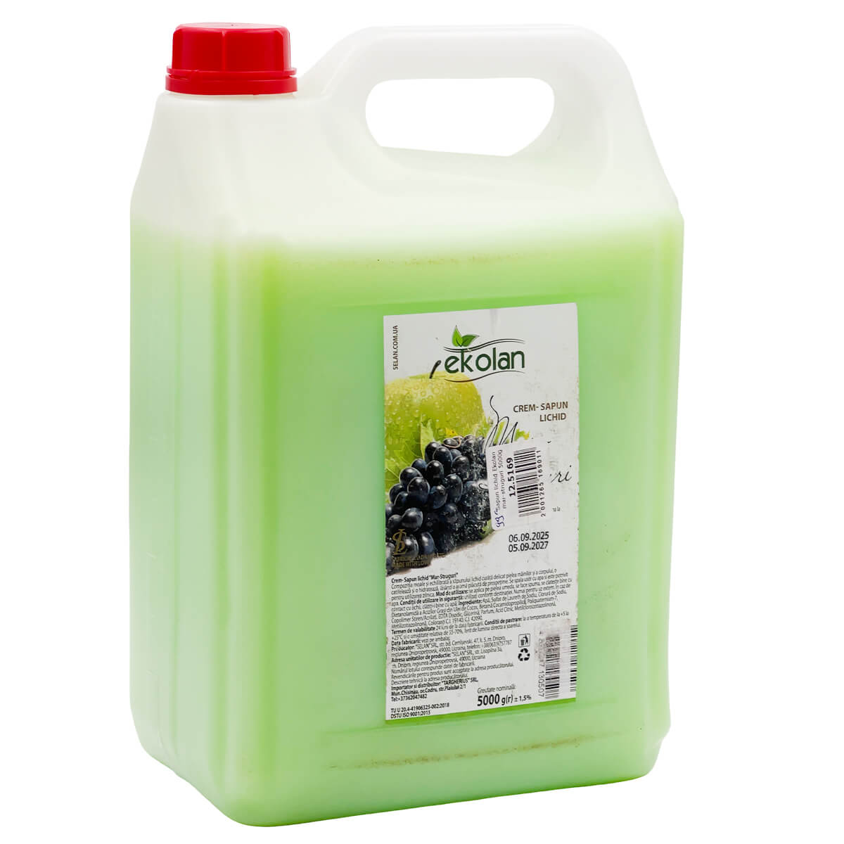 Жидкое крем-мыло EKOLAN Яблоко-Виноград 5 л канистра - предназначено для регулярного мытья рук и тела. Формула помогает очищать кожу от повседневных загрязнений, оставляя ощущение ухоженности и лёгкий фруктовый шлейф. Объём 5 литров удобен для дома, офиса и мест с высокой проходимостью — подходит для дозаторов и перелива в меньшие флаконы.