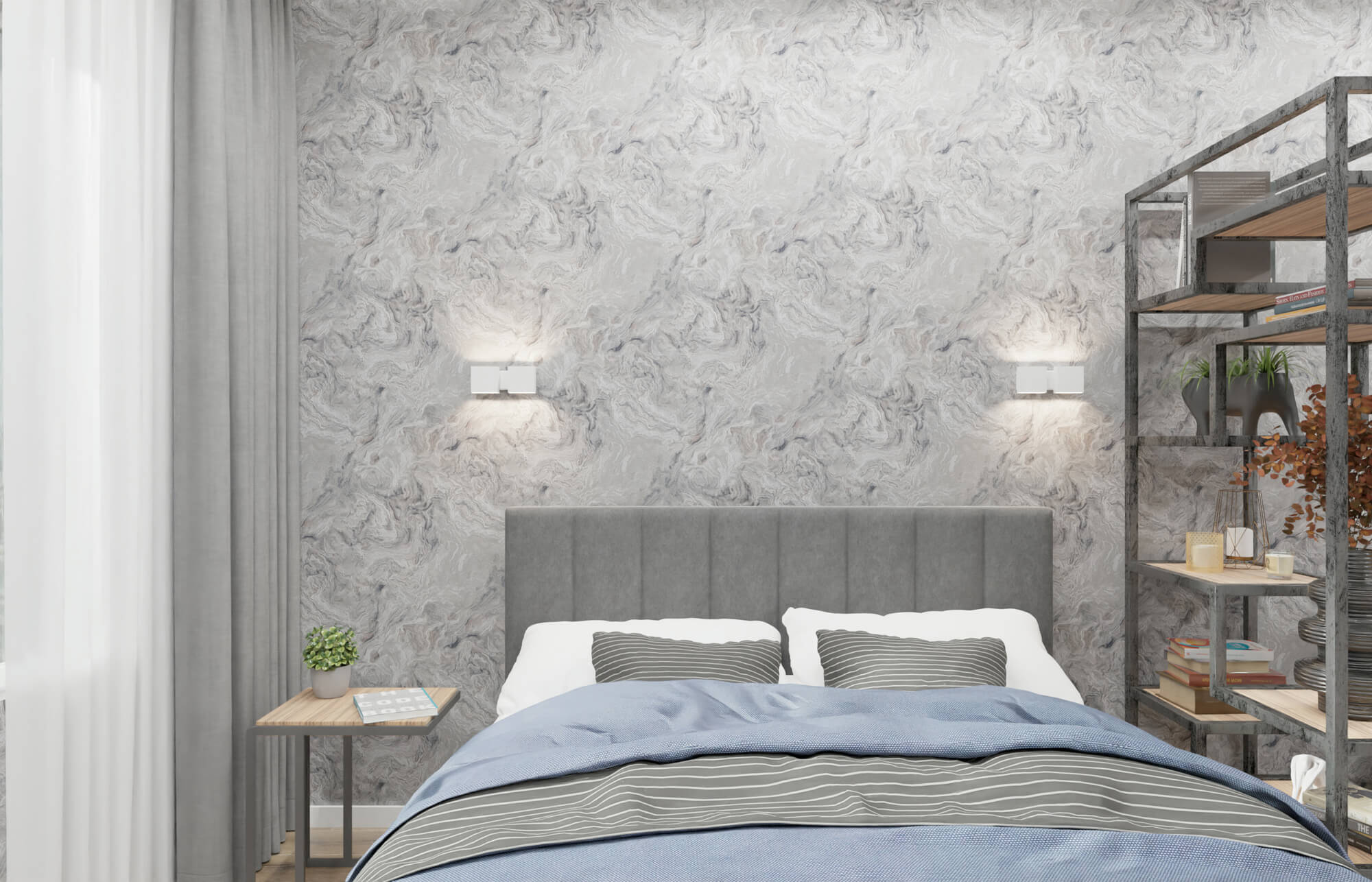 • принт «под мрамор» с мягкими переходами — визуально выравнивает стены и смотрится аккуратно как в классике, так и в современном интерьере.