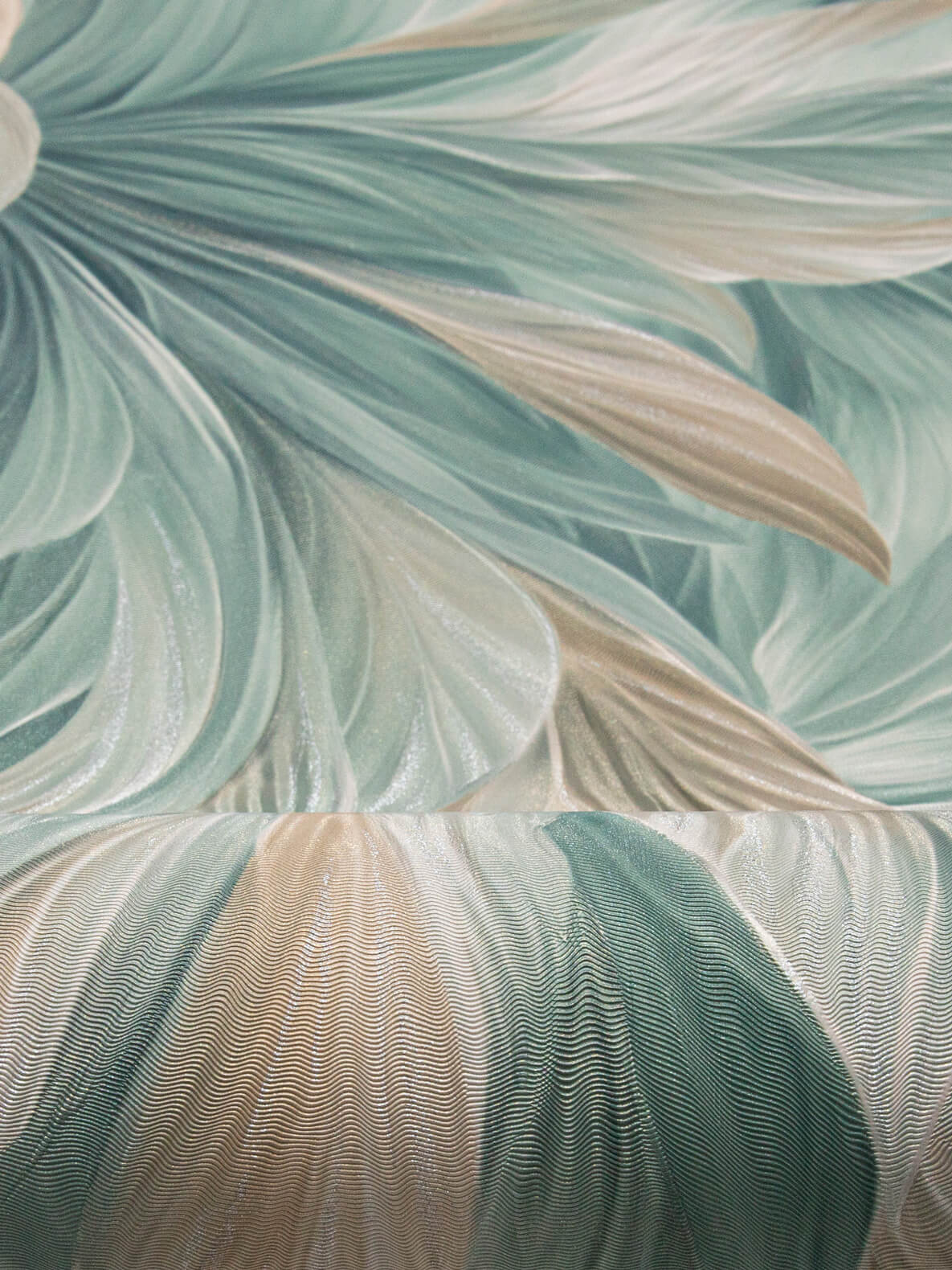 Обои виниловые на флизелиновой основе NewAge RIO NA9103-26 зелёные 1,06 x 10,05 м горячее тиснение супермоющиеся — практичное решение для интерьера, где важны внешний вид и простота ухода. Рисунок с мягкими переходами зелёных и светлых оттенков добавляет комнате свежести и визуально «разгружает» пространство.