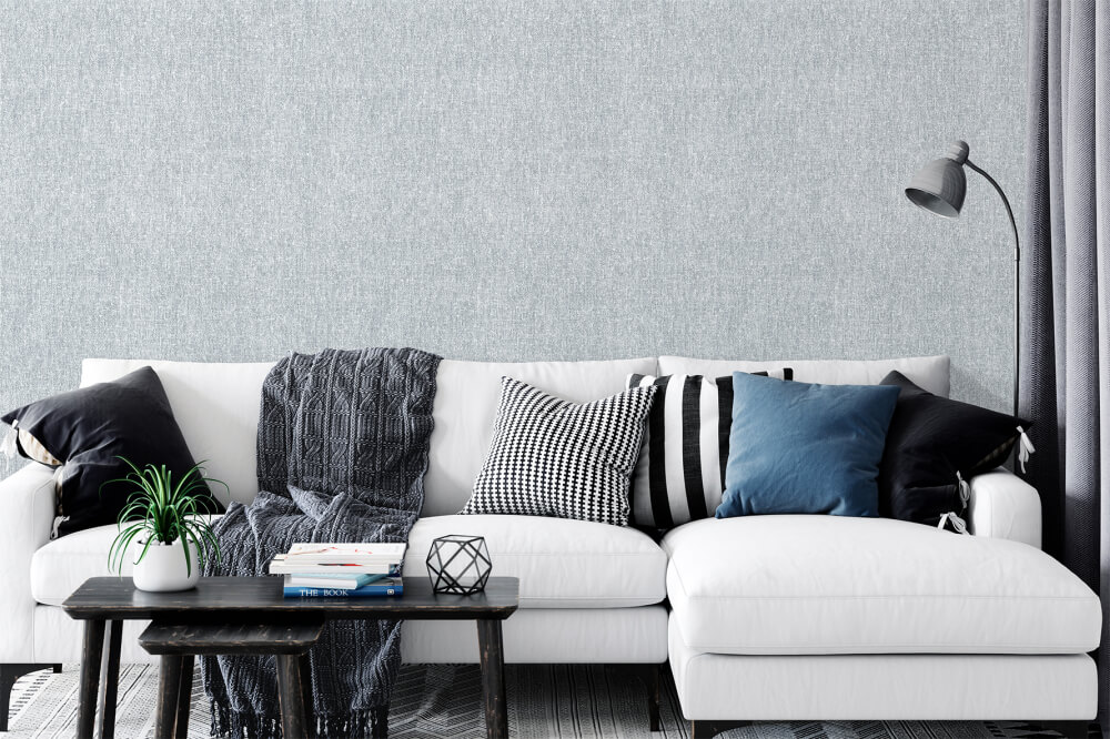 Обои виниловые на флизелиновой основе VINIL Джут СШТ 5-1555 серо-голубой 10,05 x 1,06 м — практичное решение для современного интерьера в стиле минимализм. Спокойный серо-голубой фон визуально выравнивает стены и хорошо сочетается с белой, графитовой и древесной мебелью.
