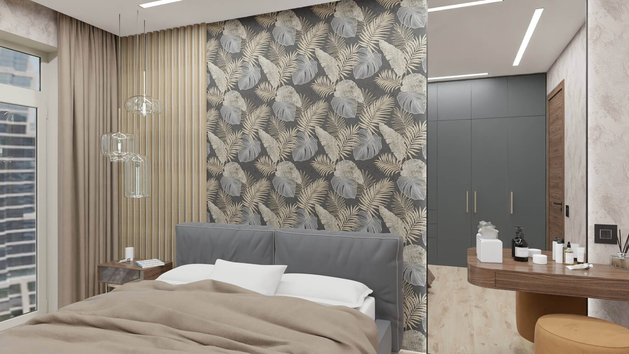 - Дизайн: Эффектный растительный принт с нотками экзотики подчеркивает стиль и современность интерьера.