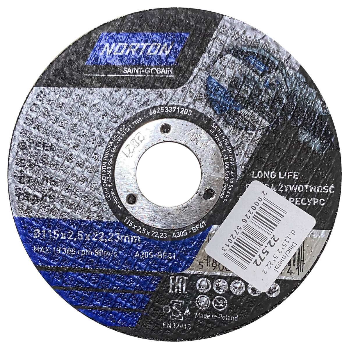 Круг отрезной по металлу 115 х 2,5 х 22,2 мм Norton (66253371203)