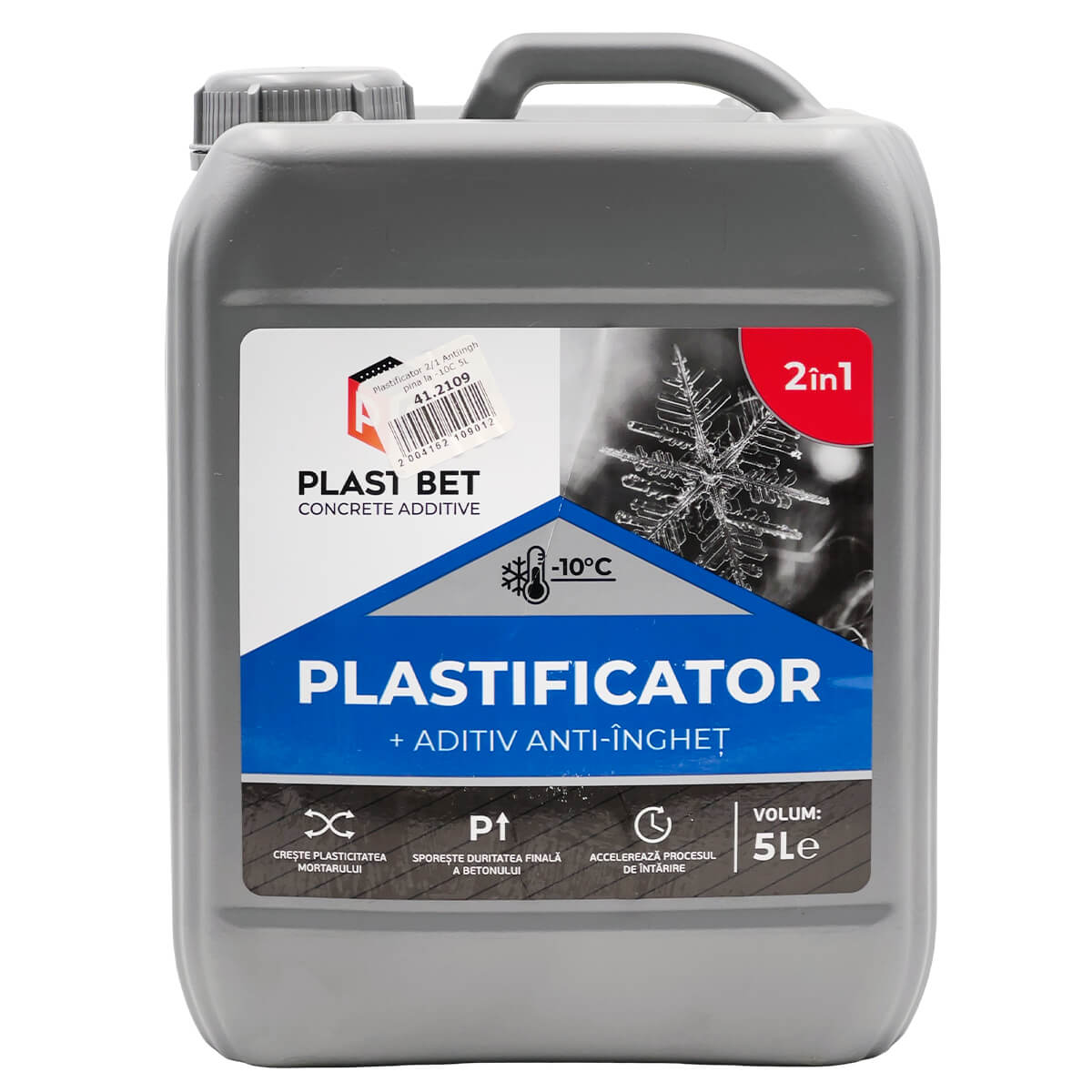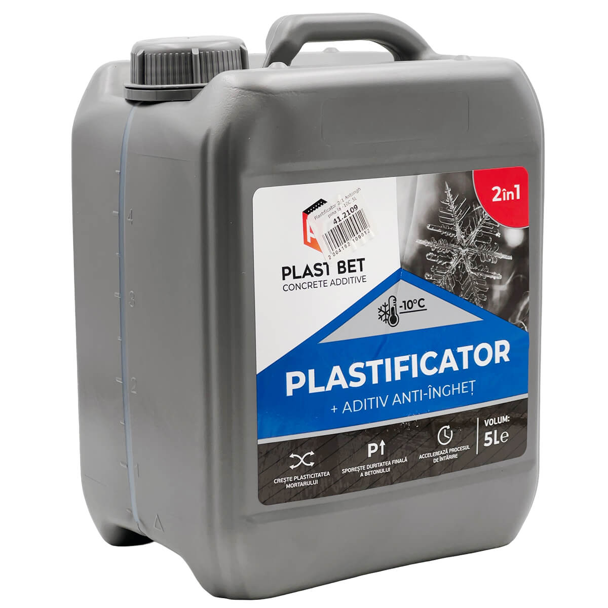 Пластификатор для бетона Plast Bet противоморозный 2 в 1 до −10°C, 5 л — жидкая добавка, которая одновременно повышает удобоукладываемость бетонных и растворных смесей и помогает выполнять работы при пониженных температурах (вплоть до −10°C). Подходит для армированного и неармированного бетона, цементных растворов, стяжек, кладочных и монтажных составов.