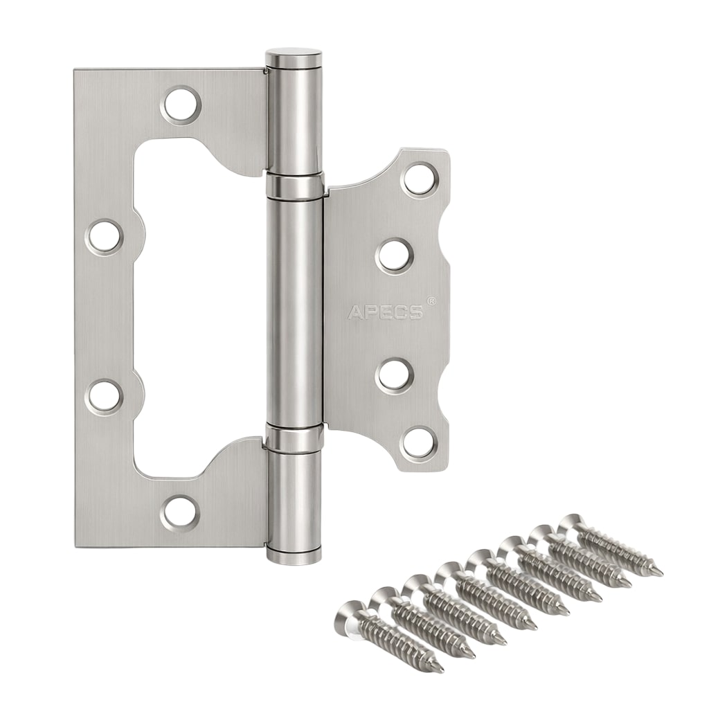 Петля дверная накладная APECS 100x75x2,5 мм, никель матовый, бабочка, без врезки, на подшипниках, универсальная — это решение для быстрой установки межкомнатных дверей без выборки посадочных мест в полотне и коробке. Формат «бабочка» позволяет монтировать петлю накладным способом, сохраняя аккуратный внешний вид и корректную геометрию двери.